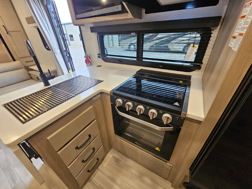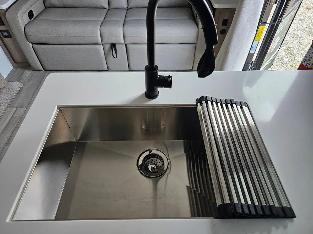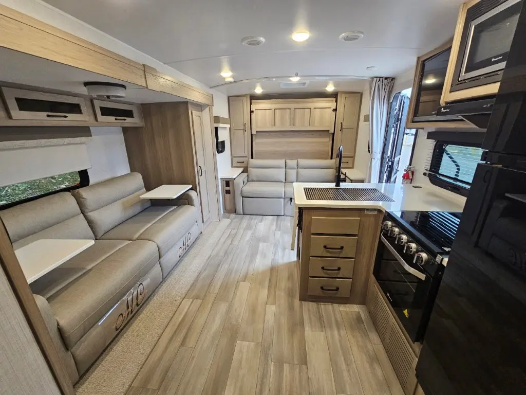 Enjoy lightweight towing, durable construction, and added interior comforts to make each trip memorable! The 6-sided aluminum framed construction provides a strong foundation so you can enjoy your RV for years to come, plus electronically controlled heated holding tanks and an enclosed underbelly will let you camp all year long. Head inside to find hybrid woven flooring in the slide outs, Sedona wood cabinetry, solid surface kitchen countertops, and many more amenities.